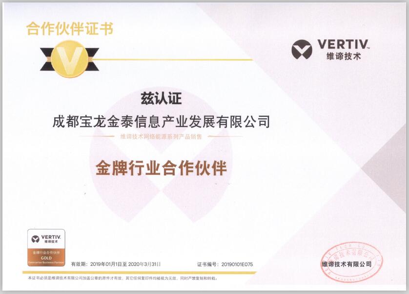 2019年维谛(原艾默生)代理证书