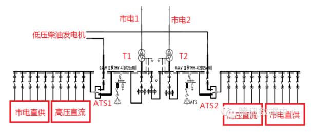 ATS和总负载容量为1.5MW的两个T1\T2变压器输出的两组高压直流负载