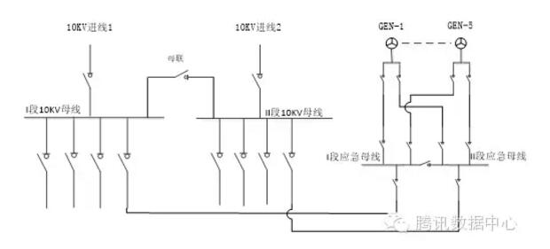 电停电,则由另外一路市电带起所有负载,只有两路10KV都掉电后柴油发
