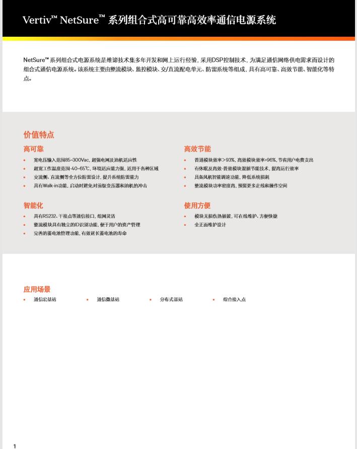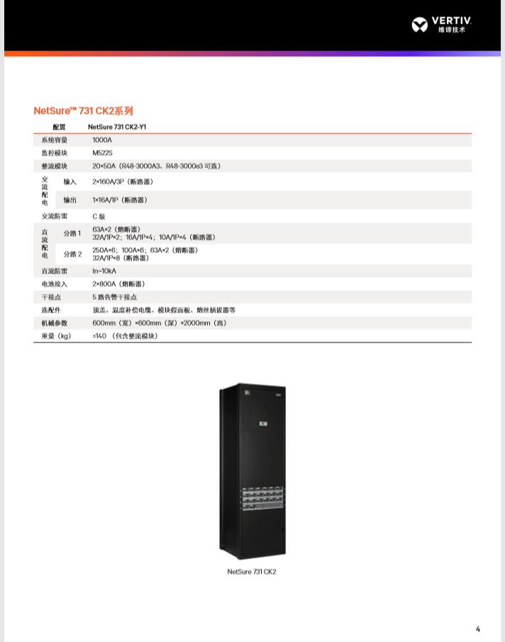 Vertiv™ NetSure™ 系列组合式通信电源系统